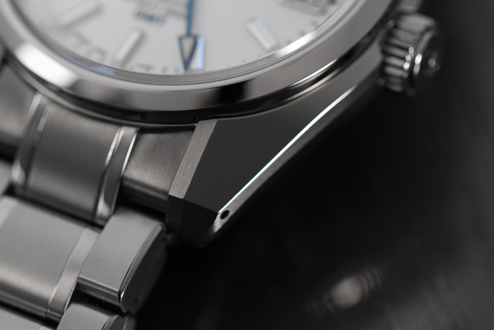 The case on SBGJ255 measures 40mm in diameter and 14mm in thickness. It is rated to 10 bar water resistance, and the magnetic resistance is 4,800 A/m. Both the case and the bracelet are rendered in an alloy Grand Seiko calls High-Intensity Titanium. This metallic composite has a high hardness, and it is about 30% lighter than standard stainless steel. It is extra resistant to both scratches and corrosion, and it can also be finished to a high degree, which makes it distinct when compared to industry-standard titanium alloys. High-Intensity Titanium has a bright quality, and the case is Zaratsu-polished to give it distortion-free surfaces that are a defining characteristic of the Grand Seiko Style.
