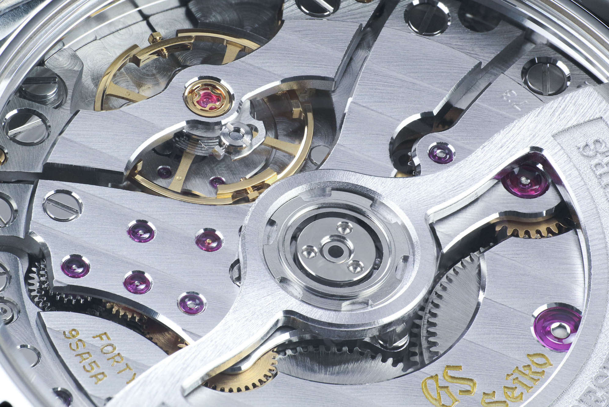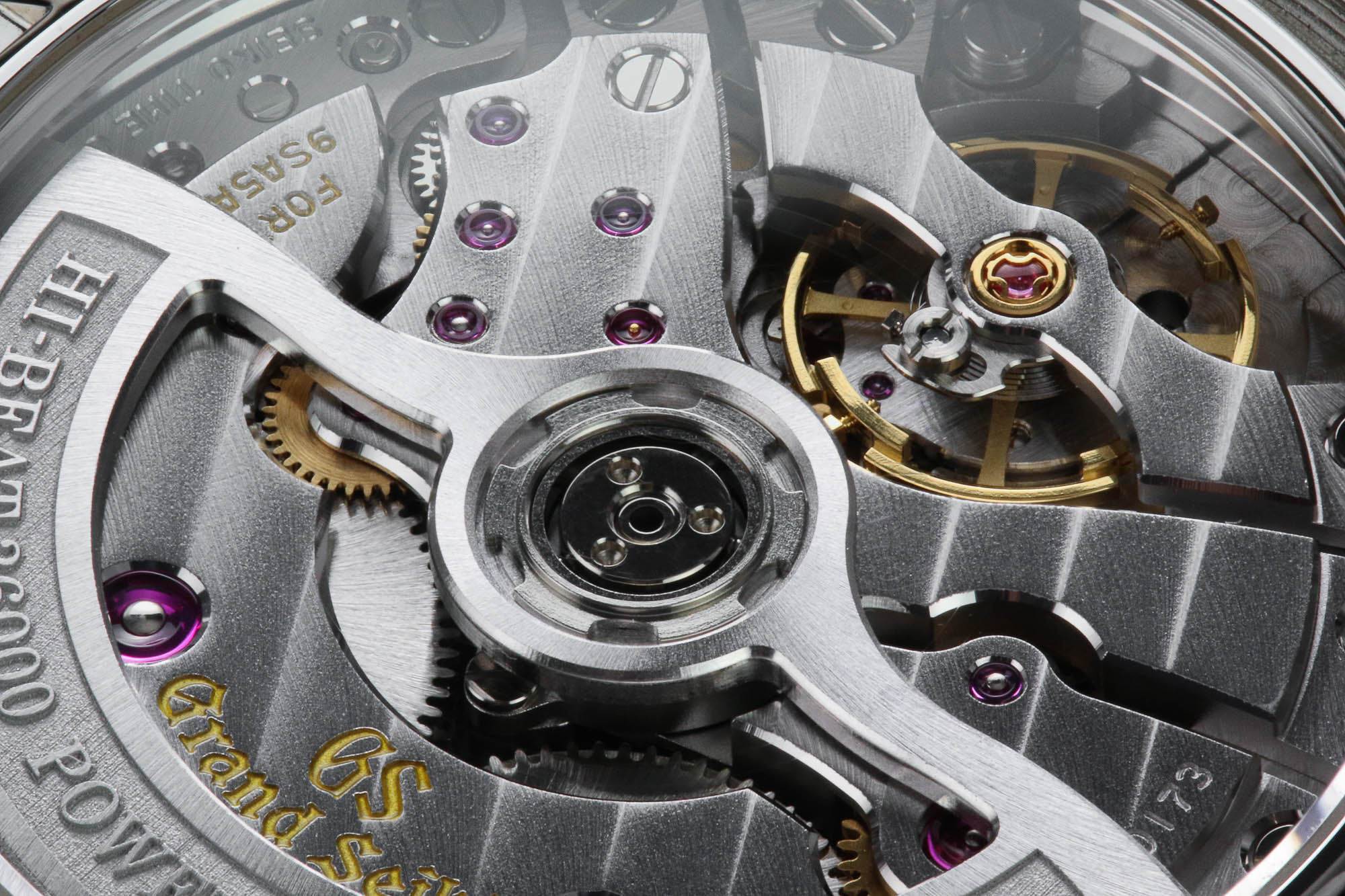 Another unique and patented aspect of the 9SA5 caliber is the Grand Seiko Free-Sprung Balance. Grand Seiko watchmakers are masters of adjusting flat hairsprings with a regulator balance, which is how all other Grand Seiko watches were until the introduction of the 9SA5. This helped in terms of serviceability, making it easier for adjustments to be made by a trained watchmaker so that aftersales service could be made more efficient. A free-sprung balance, however, generally requires more work to adjust if one has to tinker with more than just the rate.