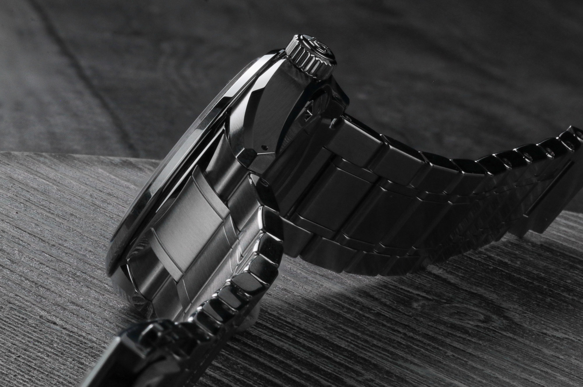 The stainless steel bracelet is a broad 22mm wide where it meets the case and it has a slight taper down to 20mm. This, along with the newly designed lower placement of the crown that lowers the watch’s center of gravity, increases the stability and the overall feel of the watch on the wrist. It truly feels unlike any other Grand Seiko you may have tried on before. The bracelet has a new five-piece link design that gives it an almost integrated look with the case. It is nearly entirely hairline, or matte, finished, adding to its sportier and modern feel. The only polished attributes on the bracelet are on the beveled outer edges and sides.
